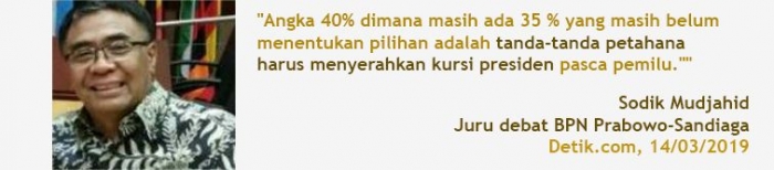 Tetapi jika benar itu terjadi, belum tentu hal tersebut menguntungkan Prabowo Subianto. Jika peningkatan jumlah undecided voters ini gara-gara sentimen demokratik, maka mereka akan memilih menjadi golput, bukan pindah ke kubu Prabowo Subianto. Itu berarti pertambahan jumlah undecided voters tidak mengubah imbangan kekuatan pemilih.