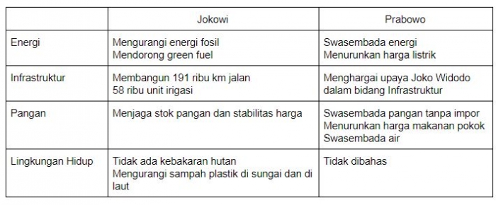 Sumber: Kumparan.com (Disesuaikan dengan ringkasan oleh penulis dari transkrip debat capres segmen pertama putaran kedua)